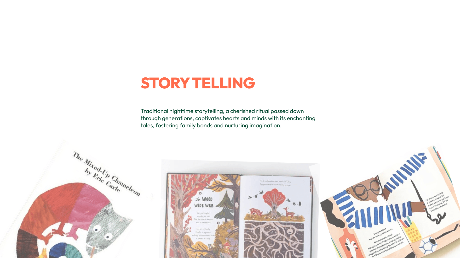 This interface relies heavily on typography, combining beautiful typefaces to create a unique visual dialogue. The main goal is to engage children with stories, creating a fun and interactive learning experience. The aim of this project is to develop an interactive bedtime stories application that promotes valuable family interactions, strengthens the bond between parents and children, and supports the holistic development of children by providing them with engaging storytelling experiences.