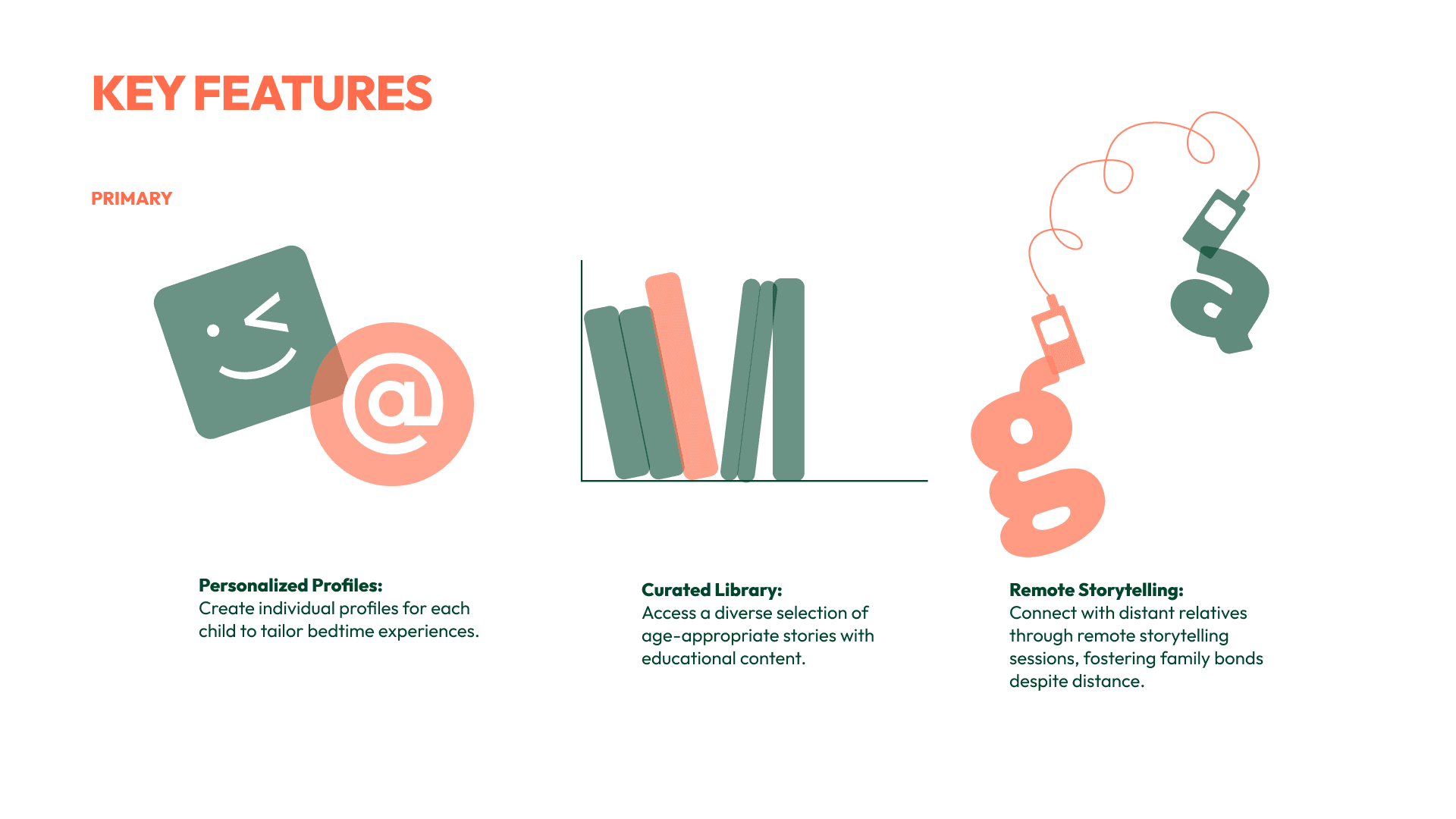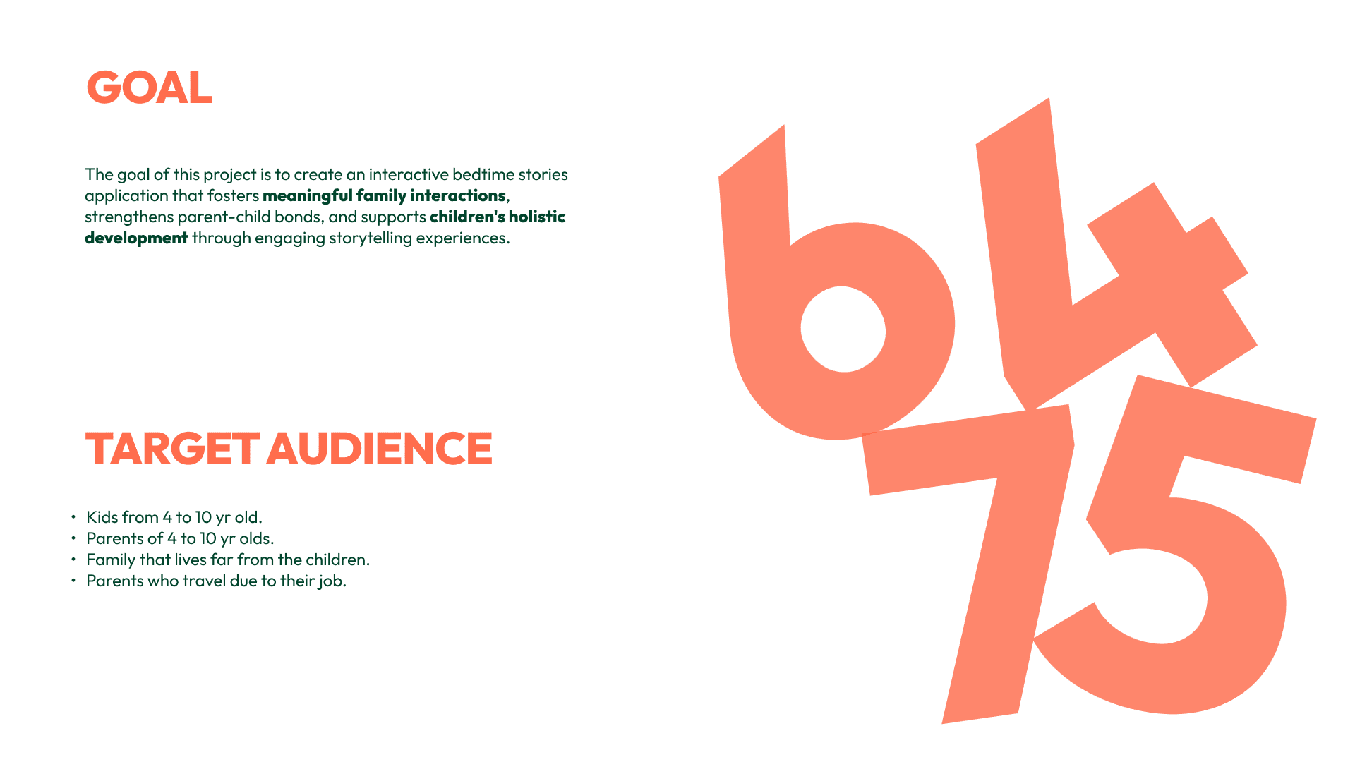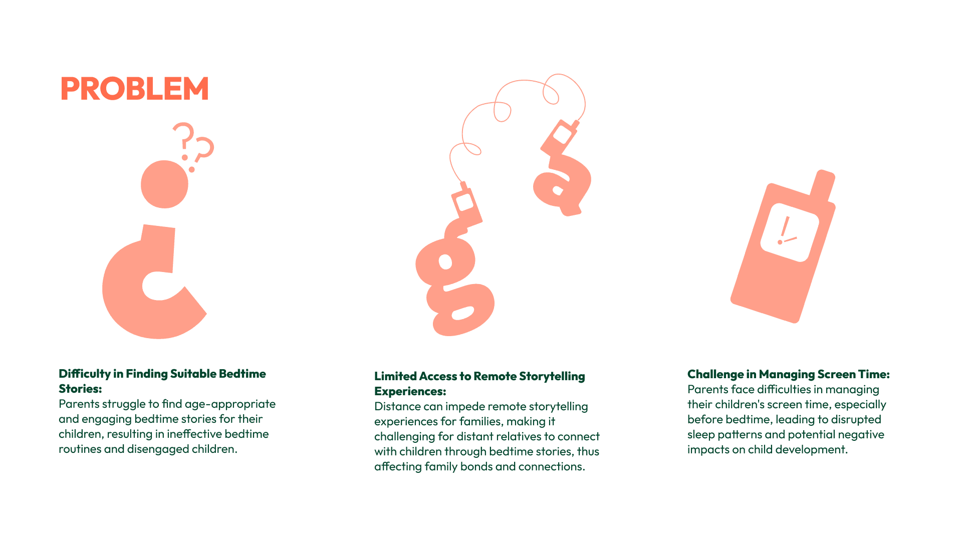 This application serves to transform bedtime routines by providing curated bedtime stories, interactive features, and remote storytelling capabilities, all geared towards enhancing family connections and promoting children's development.
